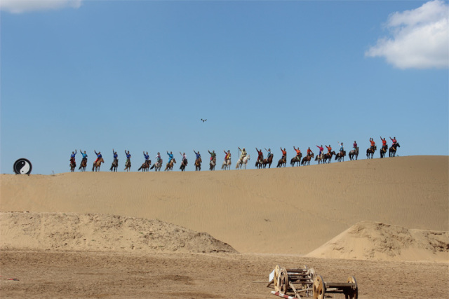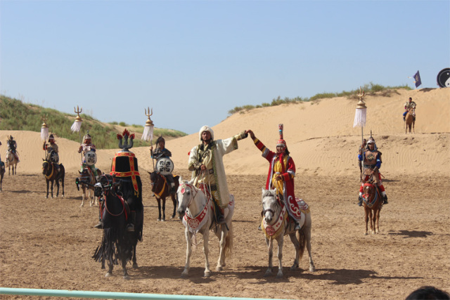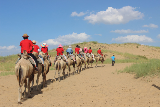 團(tuán)體游戲熱身后前往神泉旅游景區(qū)通過(guò)坐索道過(guò)黃河,到庫(kù)布其沙漠觀看大型馬術(shù)實(shí)景劇《永遠(yuǎn)的成吉思汗》、沙漠沖浪、滑沙、騎駱駝等民族特有的娛樂(lè)項(xiàng)目。